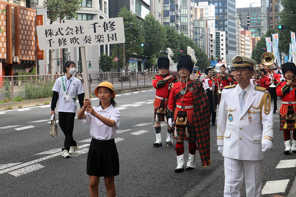 千修吹奏楽団は、千代田区推進委員会の依頼により2009年から「麹町大通りパレード」に出演しています。このパレードは『社会を明るくする運動』の広報活動の一環として、2005年から毎年、強調月間に開催されています。